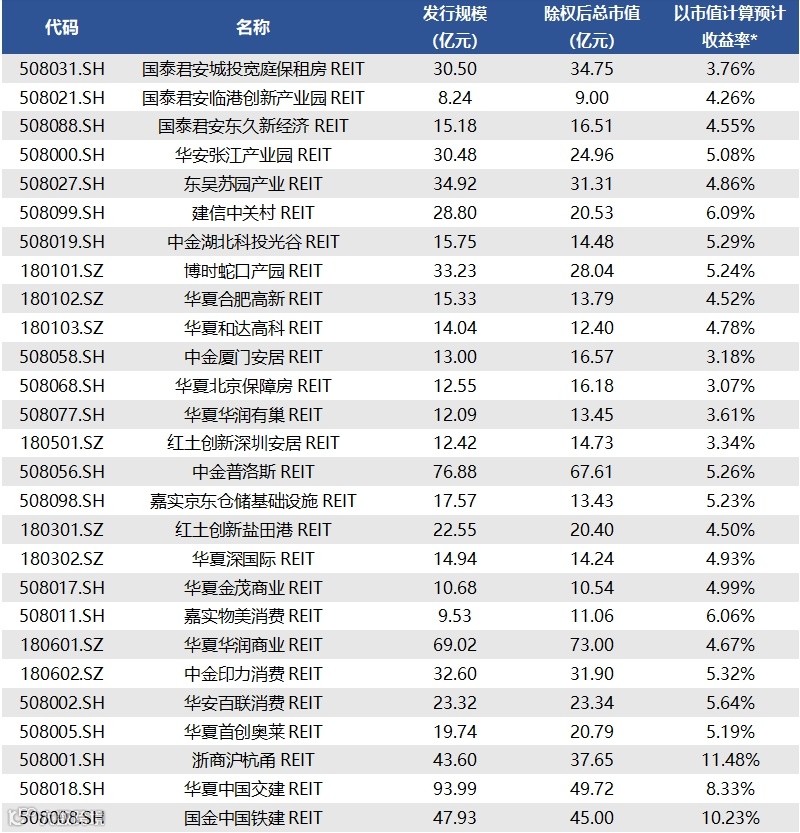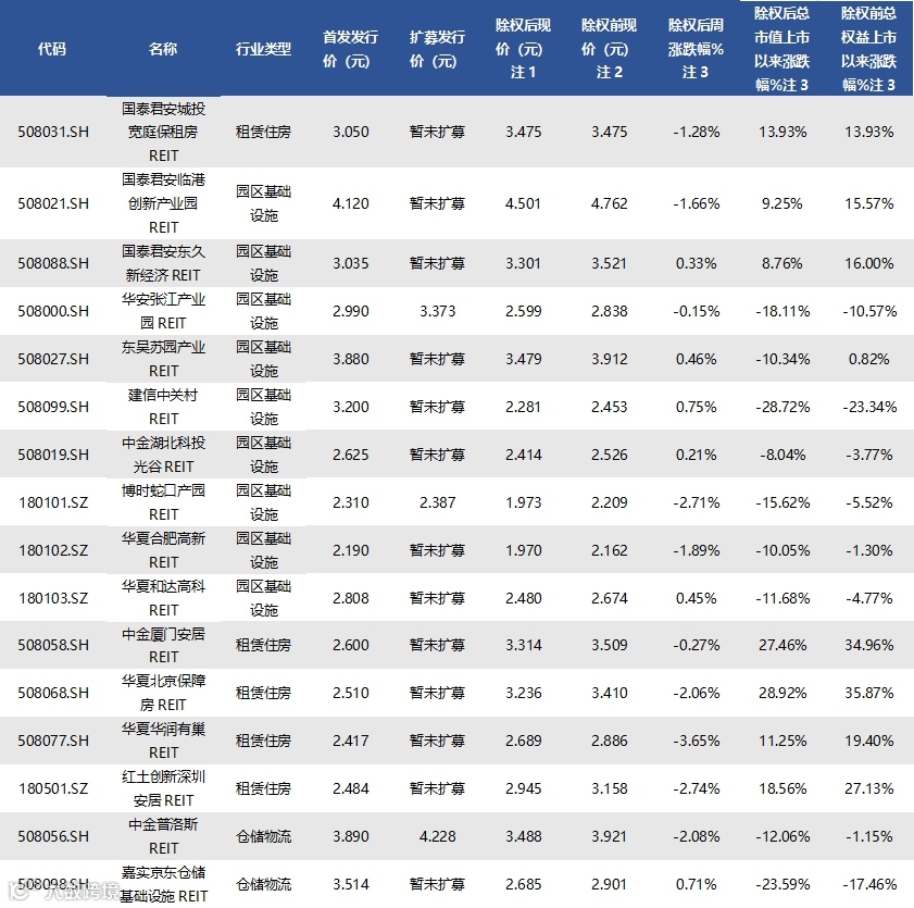 截至8月30日收盘,已上市42只REITs的收益率情况如下表所示: