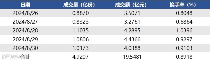 图表4▼上周成交量、成交额与换手率情况