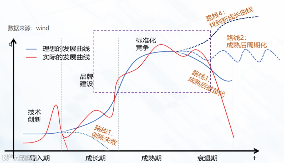 你以为走过创新期就该到品牌建设期了,但也有可能它创新失败直接遗憾离场了;你以为到衰退期大概率就要被淘汰了,结果人家找到了第二增长曲线,又成功延长了生命周期。