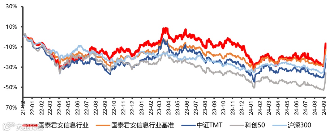 图表:国泰君安信息行业基金相对各指数超额收益