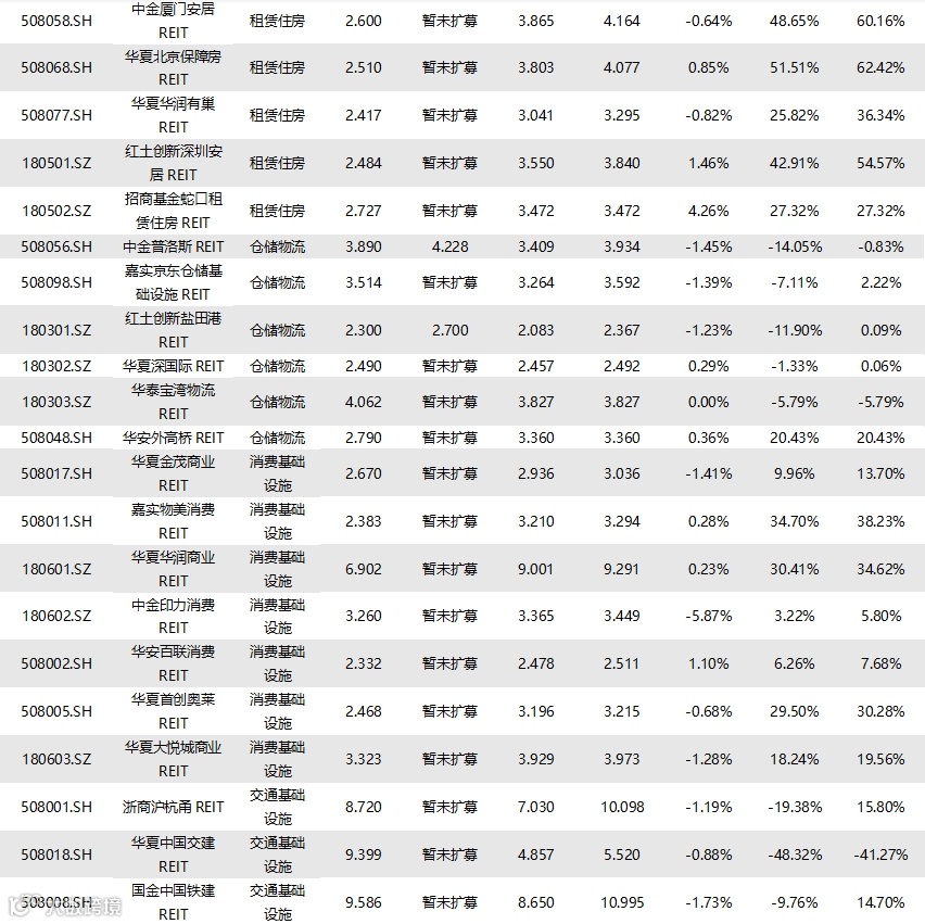 截至1月17日收盘,已上市58只REITs的收益率情况如下表所示: