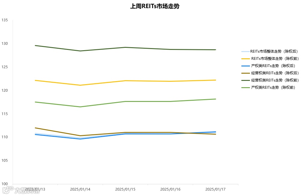 2025年1月13日至2025年1月17日,REITs市场整体上涨,走势情况如下图所示: