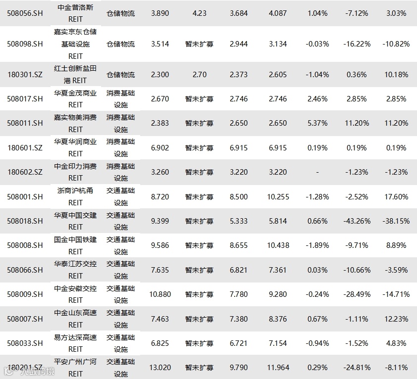 截至5月10日收盘,已上市36只REITs的收益率情况如下表所示: