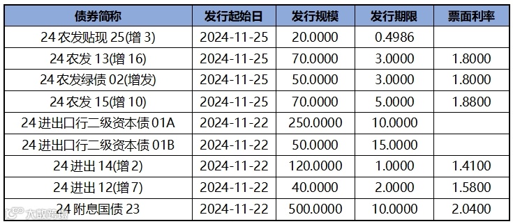 截至上周五下午4点,本周利率债计划发行9只,总计划发行规模为1170亿元。