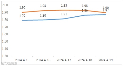 上周市场依旧较为宽松,受税期影响银行相对偏紧,但与以往税期相比还是宽松,非银供给非常充足,周五信用隔夜及7D均降至1.9%以下。截至4月19日,隔夜加权1.87%,早盘押信用1.9-2.0%;7d加权1.90%,早盘押信用1.90%-2.15%。