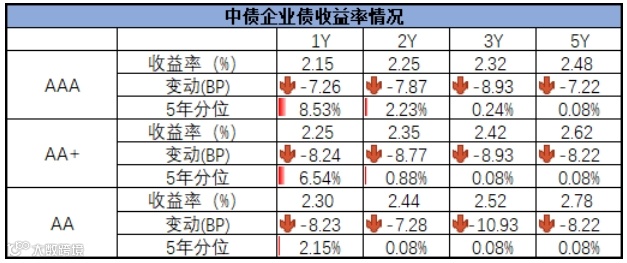 信用债方面,各期限中短期票据和企业债到期收益率整体下行,中债中短期票据到期收益率平均下行4.8bp,企业债到期收益率平均下行4.5bp。