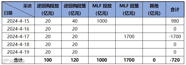 公开市场操作方面,上周全口径公开市场操作净回笼720亿,其中央行公开市场累计投放100亿元逆回购,共到期120亿元逆回购。