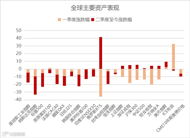 在通货膨胀持续超预期影响下,二季度美联储提高加息幅度,6月议息会议上,加息75个基点。美元指数和美债收益率继续上行,原油等商品高位震荡,欧美主要股票市场继续下跌,俄罗斯股市二季度大幅上涨,走出反转态势,A股主要指数在二季度有所表现。