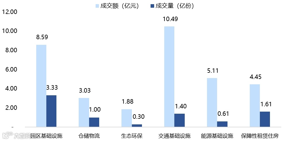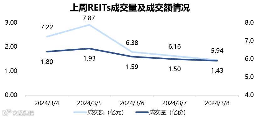 图表5▼上周REITs成交量及交额情况