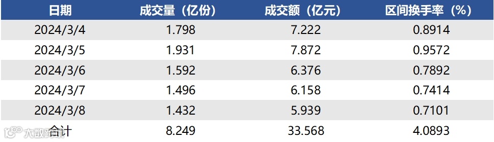 图表4▼上周成交量、成交额与换手率情况