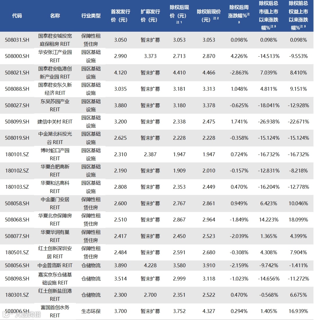 截至3月8日收盘,已上市30只REITs的收益率情况如下表所示: