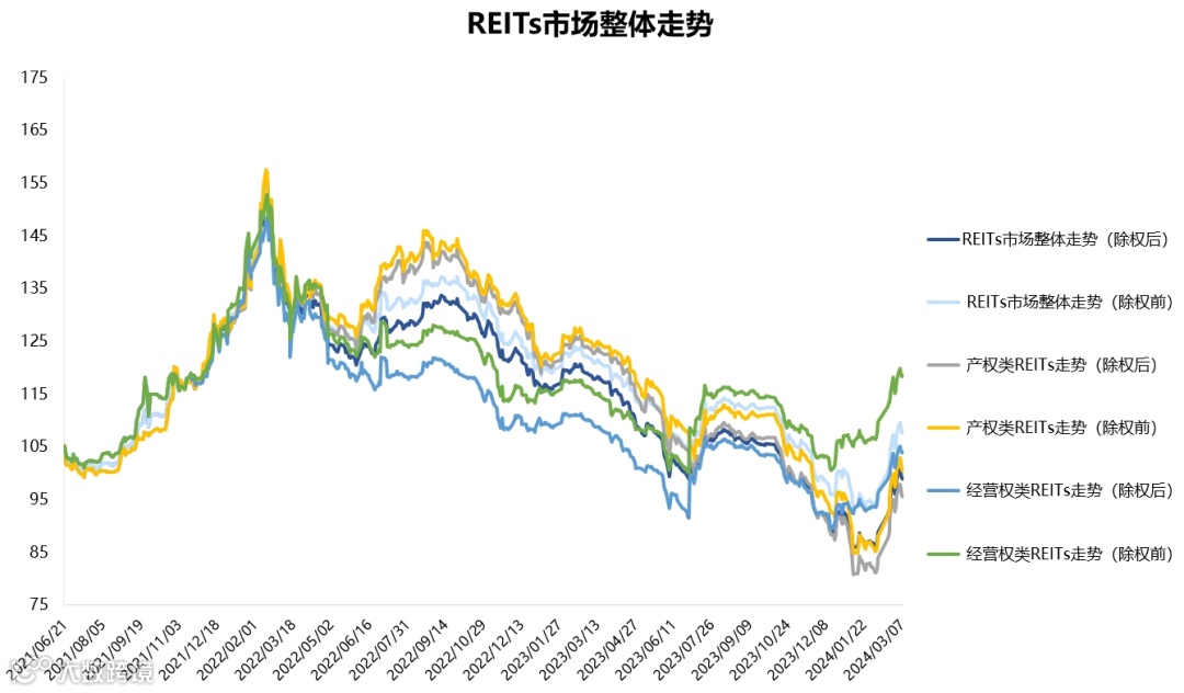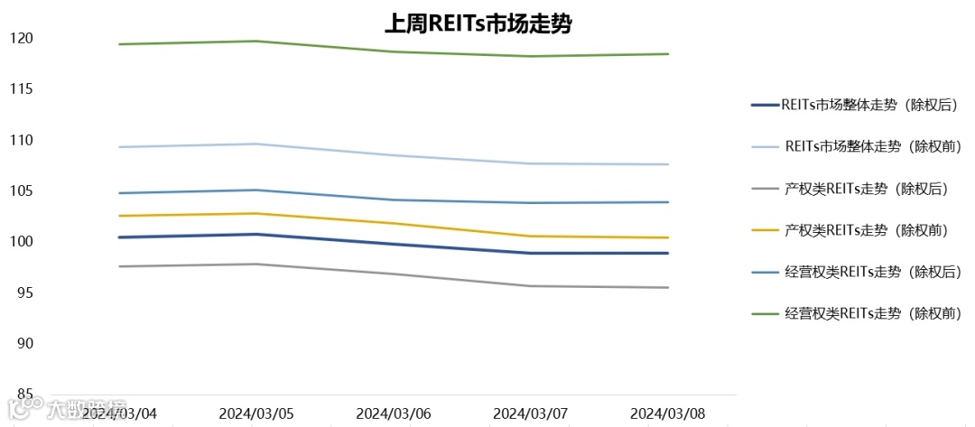 2024年3月4日至2024年3月8日,REITs市场整体略有下跌,走势情况如下图所示: