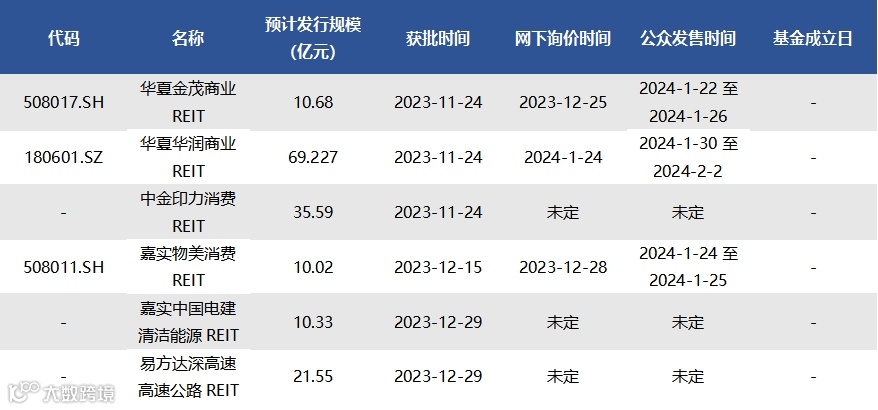 1月26日,华润商业REIT发布基金份额发售公告,本次公众投资者认购期为2024年1月30日至2月2日,其中场内认购时间为每个交易日的9:00-15:00,场外认购时间以各销售机构规定时间为准。