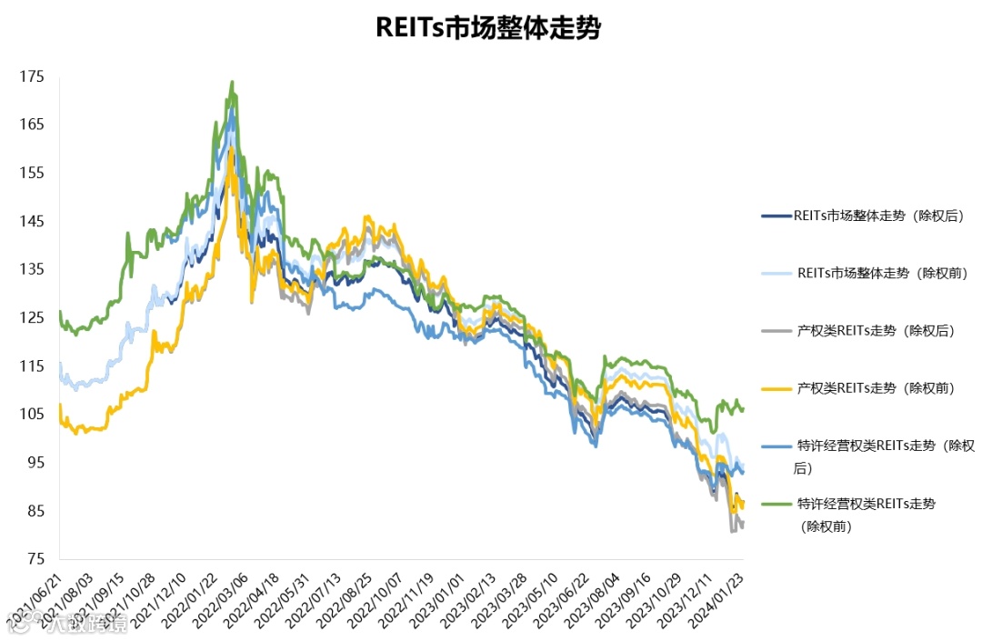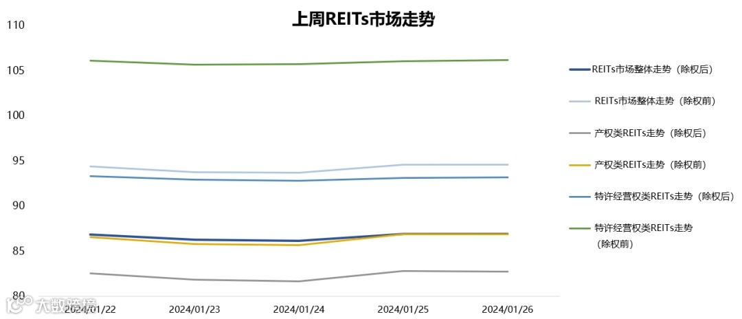 2024年1月22日至2024年1月26日,REITs市场整体波动上行,走势情况如下图所示: