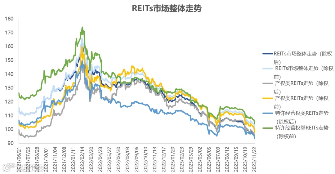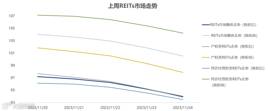 2023年11月20日至2023年11月24日,REITs市场呈整体下降下跌态势,走势情况如下图所示: