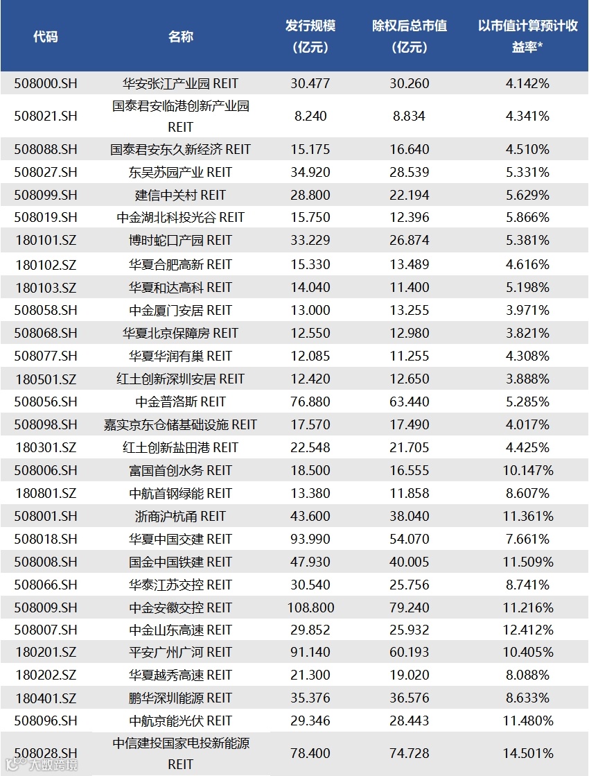 图表1▼已上市29只REITs情况概览