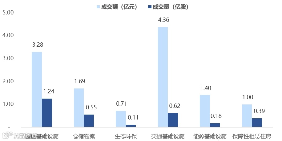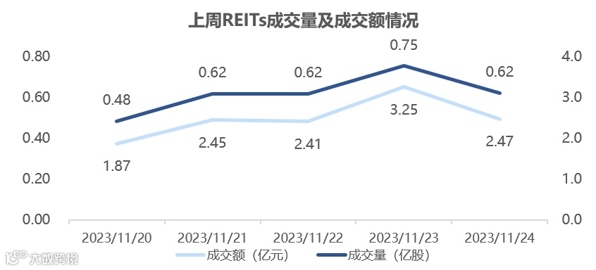 图表5▼上周REITs成交量及交额情况