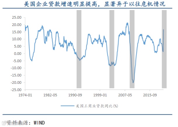“衰退式的资产负债表”提前反应的特征之二,是企业部门和居民部门借贷需求长期疲软。1990年后,日本企业集体崇尚趋向“0”负债的资产结构,甚至面对几乎为零的短期利率也不为心动;而1929年的美国也有类似规律,根据全美工业会议于1932年针对3438家制造企业进行的一项调查表明,当时86.4%的企业没有借贷需求,企业甚至自愿自发地削减债务。相对而言,从近期美国企业债发行额以及美国企业贷款增速来看,美国企业融资的需求仍然很旺盛。