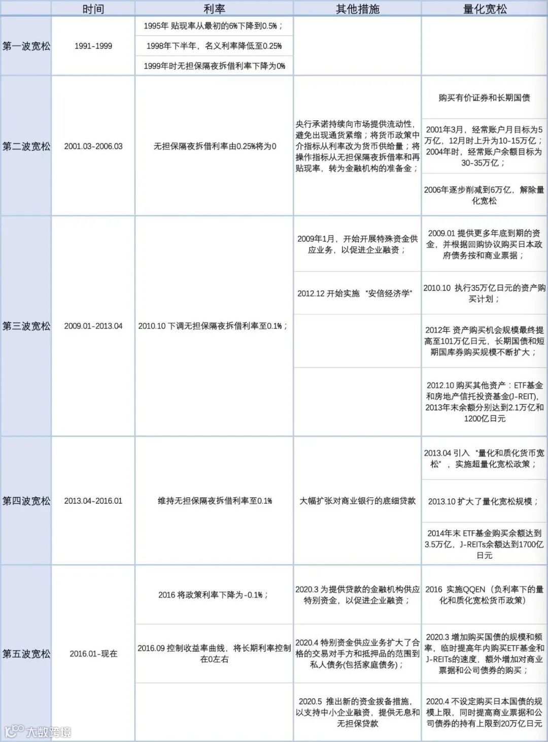 以长期实行负利率政策的日本为例。自泡沫经济破裂以来,日本已经实施了五轮货币宽松政策。