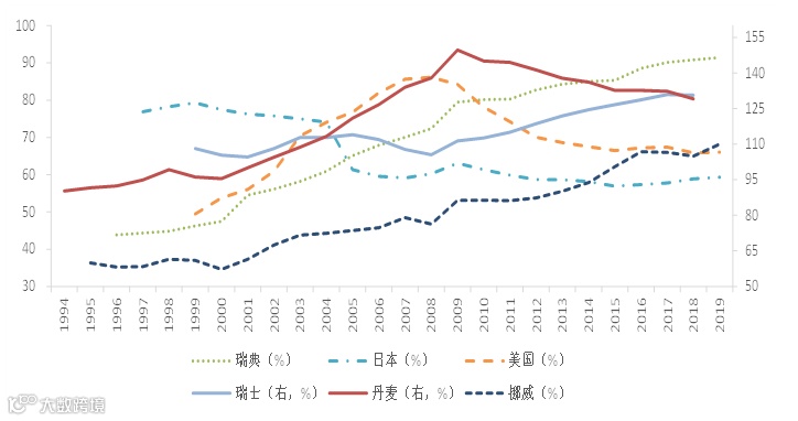 从过去多年的情况来看,持续低利率的国家通常能看到家庭债务占比的上升。