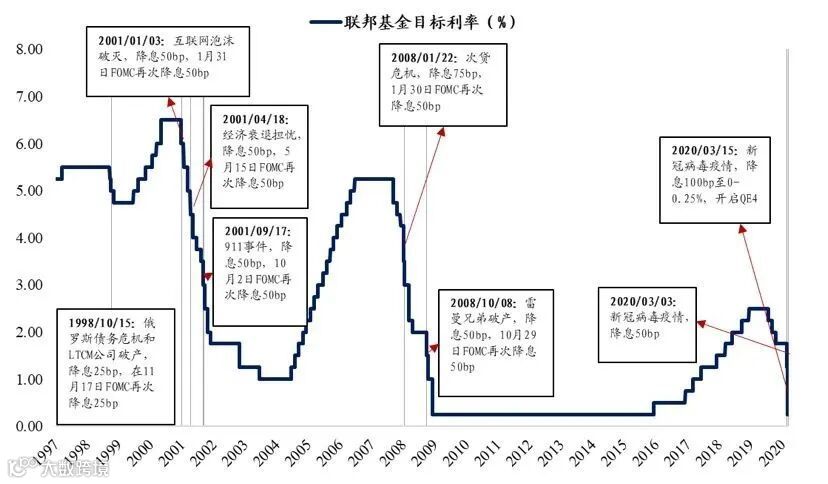 美联储以“应对疫情影响”为名,再次启动零利率政策,并宣称:未来一段时间将继续维持0-0.25%的目标区间,直至确信美国经济承受住了近期事件的考验。