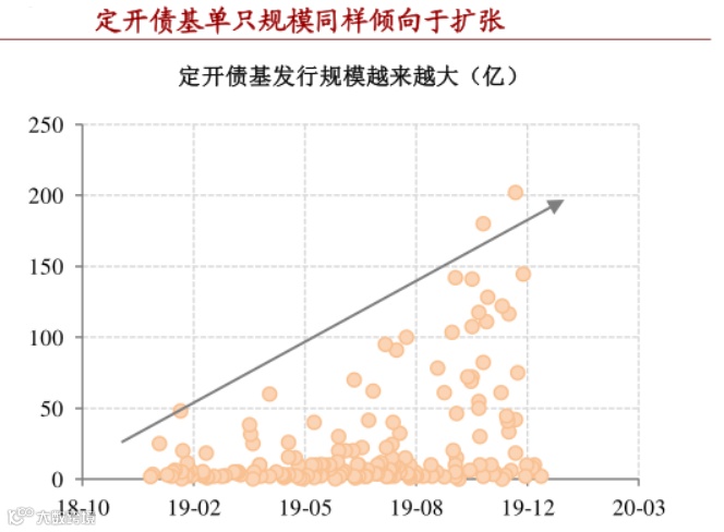 除了和中长期纯债一样具备规模稳定(封闭操作)、200%杠杆上限、操作空间大等特点外,定开债还具备流动性相对较强、以时间换空间的优势。定开债相对通常三年及以上的中长期纯债基金来看,其通常约定的封闭期大多数为1年,也有3个月、半年、2年、3年的多种选择,可以满足更多投资者对于资金运作的效率需求。再者,定开债的收益对比中长期纯债基金而言,在中长期盈利层面看,其用锁定期换取增厚收益的能力更强。据同花顺数据来看,在纯债基金中,定开债基金近2年、3年、5年平均业绩均高于普通中长期纯债型基金平均收益。也正是因为定开债基拥有诸多优势,目前定开债基已经逐渐成为市场中不可忽视的一类基金。