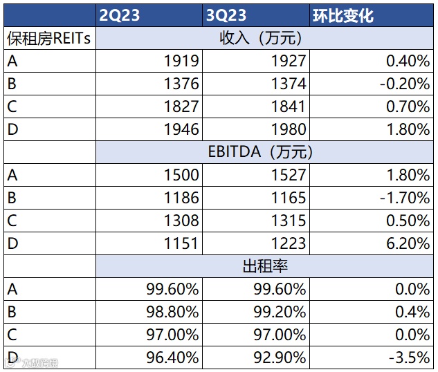 从基金收入与利润情况来看,已上市的四支保租房REITs稳定发挥。今年三季度,这四只基金的收入和利润状况与过往季度相比基本持平。