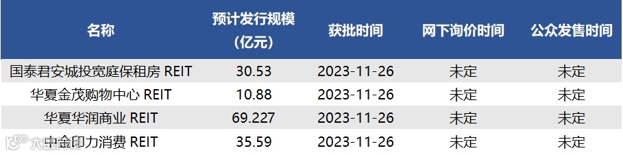 截至12月1日,已获批待上市REITs共有4只,情况如下表所示: