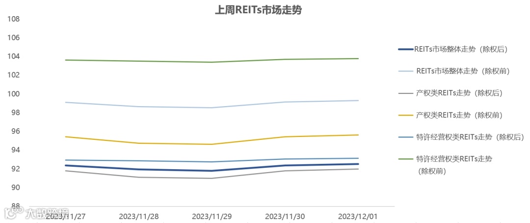 2023年11月27日至2023年12月1日,REITs市场呈整体下降态势,走势情况如下图所示: