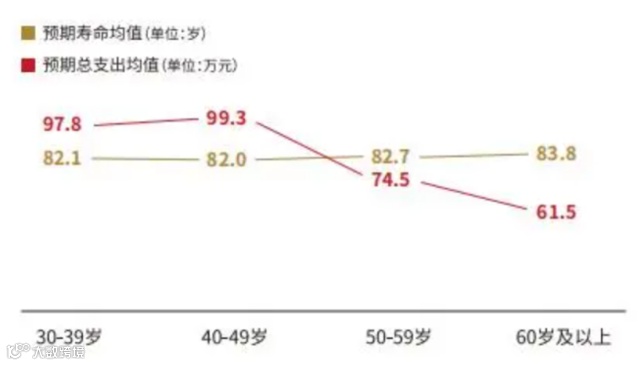 报告显示,城市居民预计养老总支出平均83.64万元,其中30-49岁居民预计养老所需资金均值接近100万元,60岁以上居民预期仅61.5万元。中老年人预期寿命更长,但养老支出预期却更低,养老费用缺口显现。