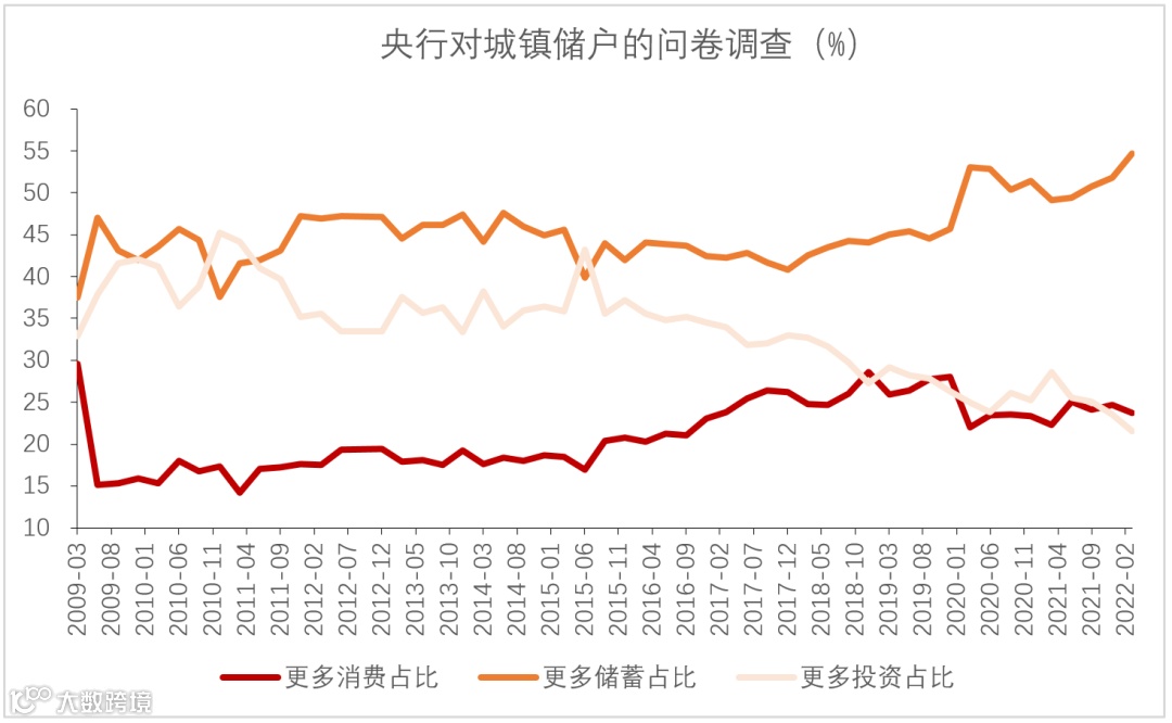消费方面,疫情反复,对就业贡献较多(根据第四次全国经济普查系列报告,中小微企业吸纳的就业人数占到全部企业就业人数的八成)的中小微企业景气度偏低仍是阻碍消费复苏的主要因素。根据央行2022Q1对城镇储户的问卷调查,倾向于“更多消费”的居民占比较2021Q4下降1pct,倾向于“更多投资”的居民占比较2021Q4下降1.9pct,而倾向于“更多储蓄”的居民占比较2021Q4上升2.9pct,显示居民消费意愿仍然偏弱。考虑到疫情形势的不可控,对年内居民消费的复苏仍应保持谨慎。