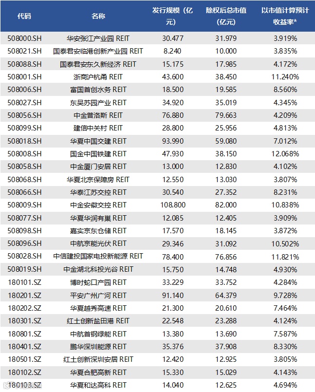 截至7月7日收盘,已上市28只REITs的收益率情况如下表所示: