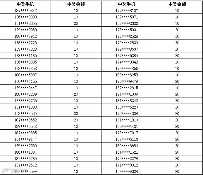 3、中奖金额将于每周五以话费的形式发放到您的中奖手机,届时敬请留意短信