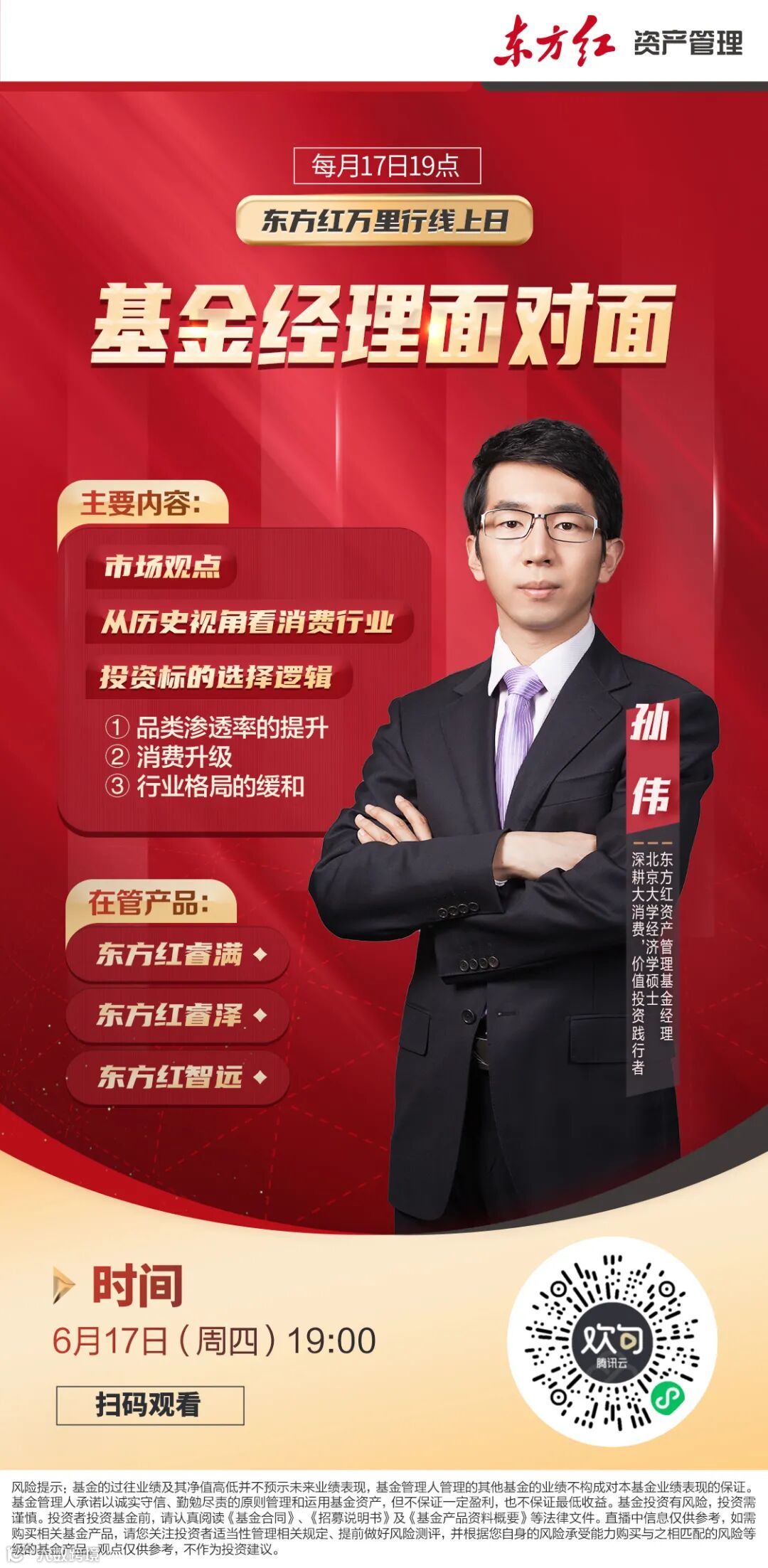 6月17日19点(周四晚),基金经理孙伟与您一起聊聊,消费品投资中的选择与机遇。