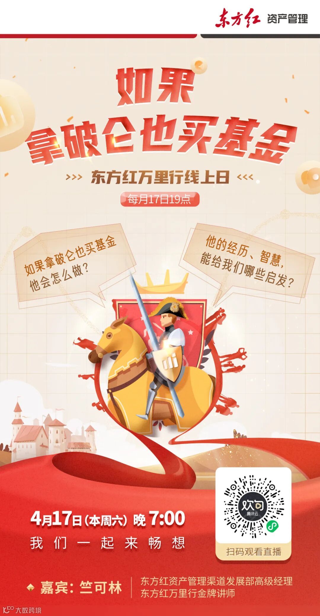 4月17日19点(本周六),东方红资产管理渠道发展部高级经理、东方红万里行金牌讲师竺可林,带您一起聊聊如果拿破仑也买基金,可能会有哪些故事,对普通投资者又有哪些启发?