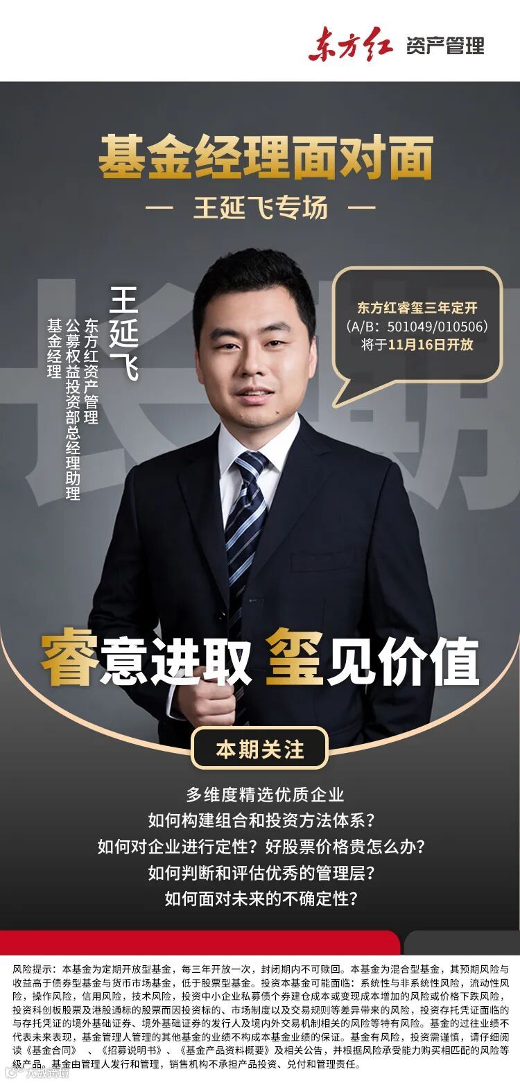 近日,在“基金经理面对面”直播栏目中,东方红资产管理公募权益投资部总经理助理、基金经理王延飞对话猫头鹰基金研究院投资总监矫健,聚焦分享价值投资方法。