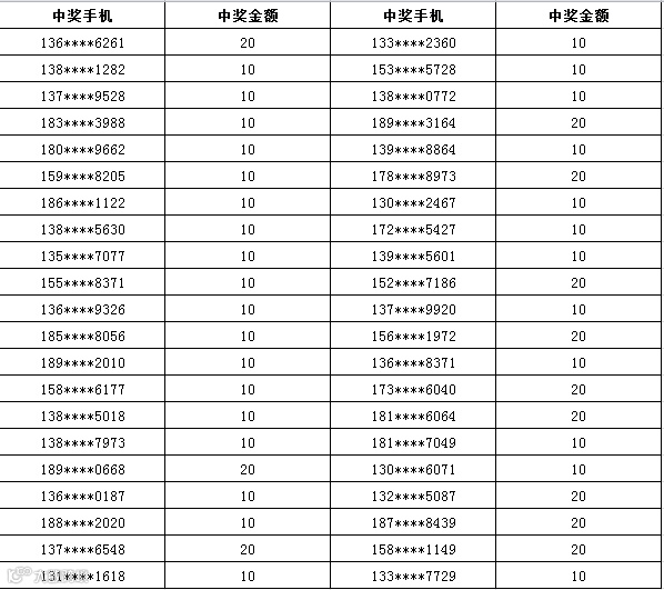 3、中奖金额将于每周五以话费的形式发放到您的中奖手机,届时敬请留意短信