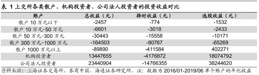 图:上交所各类散户、机构投资者、公司法人投资者投资收益对比