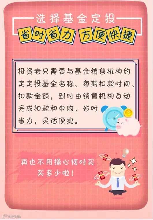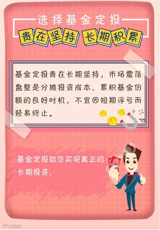 风险提示:请充分了解基金定期定额投资和零存整取等储蓄方式的区别,定期定额投资是引导投资者进行长期投资、平均投资成本的一种简单易行的投资方式,但是定期定额投资并不能规避基金投资所固有的风险,不能保证投资者获得收益,也不是替代储蓄的等效理财方式。