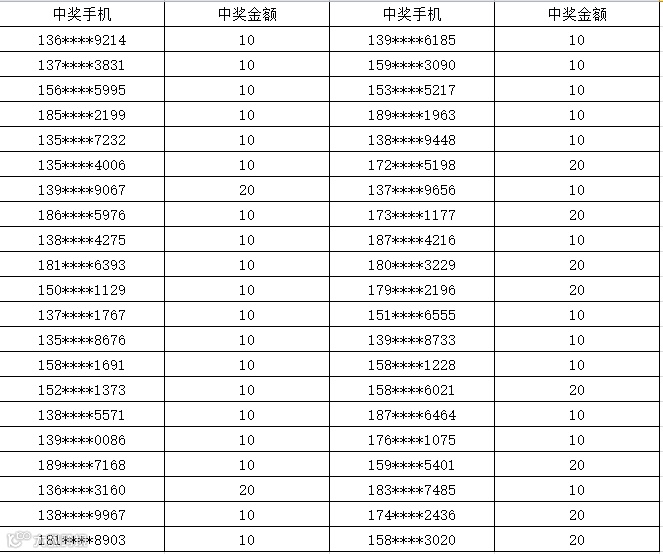 3、中奖金额将于每周五以话费的形式发放到您的中奖手机,届时敬请留意短信