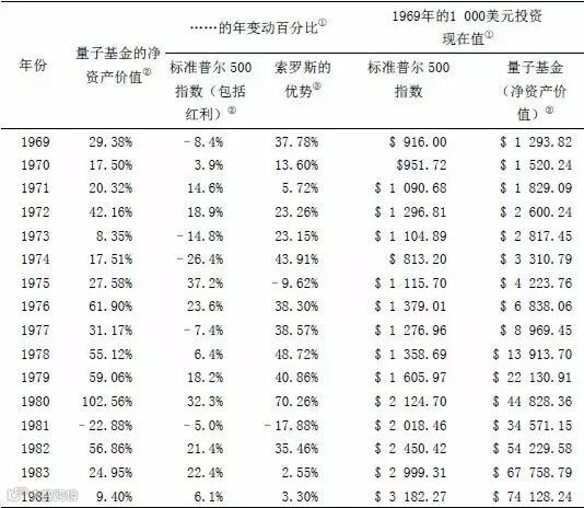 资料来源:1969~1984年的资料引自乔治·索罗斯的《金融炼金术》,第146页;1985年至今的资料来自索罗斯基金管理公司。