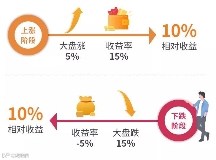 如果说绝对收益是“和自己比”,那么相对收益就是“和别人比”。相对收益基金一般是和市场代表性指数作对比,在指数上涨时,力求超越指数涨幅,在指数下跌时,也要控制回撤,力争做到比指数抗跌。