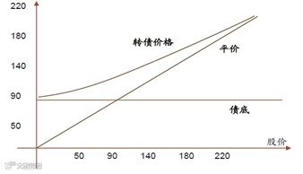 当正股的价格较高时,可转债体现的主要是股性。从股的角度来说,可转换债券的转股价值(也称平价)取决于对应正股的价格。转股价值指的是在某一时点,可转债如果转为股票,所对应的股票价值。举例来说,一张面值为100元的可转债,约定的转股价格为25元,意味着一张债券可以转为4股股票。如果当时股价为30元,则转股价值为30*4=120元。一般来说,可转债的市值很难跌到转换市值以下,否则会出现套利的机会。
