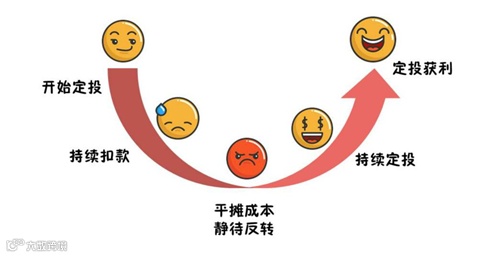 基金定投是一种分批入场方式,结合大名鼎鼎的微笑曲线来看,市场波动为定投创造了有利条件。在市场下跌中,定投能够以更低的价格买到基金份额,积累更多的低成本筹码,投资整体成本逐渐下降。