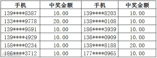 3、中奖金额将于每周五以话费的形式发放到您的中奖手机,届时敬请留意短信