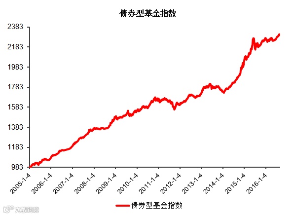 从2005年至今的11年间,债券型基金指数涨幅118.36%,复合年化收益率7.64%。