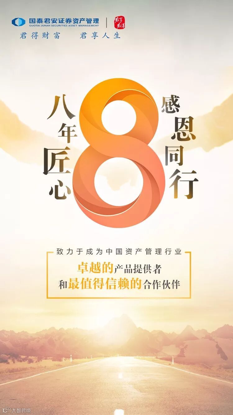 八年匠心,与君同行,上海国泰君安证券资产管理有限公司,感恩大家一直以来的支持,我们将永怀匠心与感恩之心,以更加坚定的姿态,与大家共赴未来,收获属于自己的美好回报。