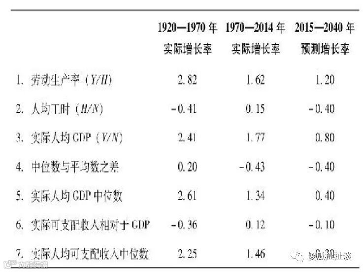 戈登展望了未来美国经济增长的细分要素,1920-1970的强劲增长一去不复返,人均GDP等数据将持续下降,正如美国前财长萨默森担忧的经济增长陷阱问题。