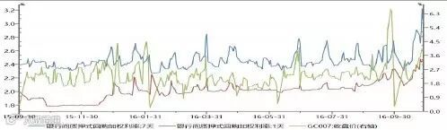 10 月以来,货币市场利率不断上升,银行间 1 天、7 天质押回购加权利率分别接近2.5%、3%,交易所GC001、GC007 分别接近 9%和4%,货币市场利率飙升主要与全球货币政策收紧环境、资金外流、央行收短放长和加强风险监管、季节性因素等有密切关系,曾一度引发市场对“钱荒”的担忧。