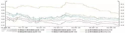 外围货币政策环境偏紧。美国三季度GDP 年化季率初值 2.9%,超出预期和前值,经济数据向好为美联储加息铺平道路,12月美联储加息概率已上升至 74%;欧、日央行对宽松更加谨慎,使得市场担忧全球宽松政策的转向,9 月和 10 月欧央行议息决议均维持基准利率不变,维持每月800 亿欧元资产购买计划,该计划与 2017 年 3 月结束,届时,若欧央行缩减购买计划,货币政策实际是在收紧,德国与法国 10 月制造业 PMI 分别为55.1 和 51.3,上升势头延续,英国三季度 GDP同比增长 2.3%,超出市场预期,欧洲经济数据好转加强了欧央行货币政策收缩的预期,另外,日本 9 月同样维持基准利率不变,数量调控转向价格调控,将日本10 年期国债价格锁定在 0,高于当前负利率水平。
